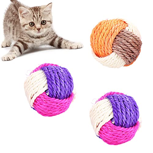 LIUJUNH 3 Pcs Cat Ball Sisal Ball Pet Scratching Animals Interactive Cat Rolling...
