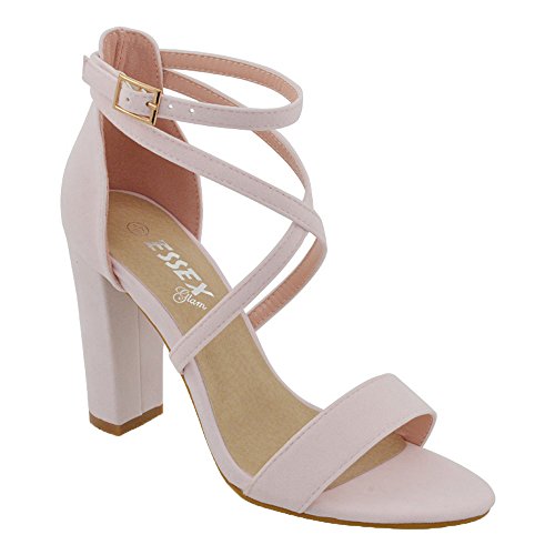ESSEX GLAM Womens Ankle Strap Block Heel Sandals Ladies Strappy Buckle Prom Part...