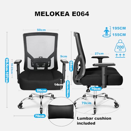 MELOKEA 440LBS 200kg Ergonomic Office Chair for Heavy People with Adjustable Lum...