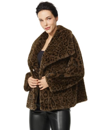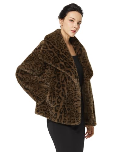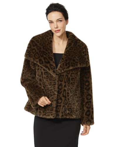 BEAUTELICATE Women's Faux Fur Coat Lined Fluffy Lapel Leopard Print Jacket Long ...