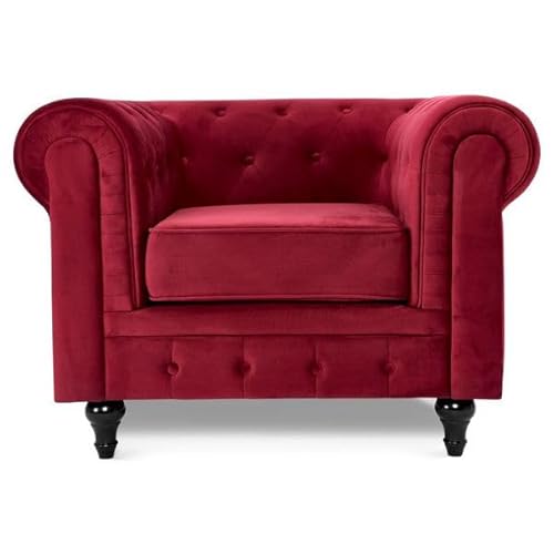 Bravich Velvet Chesterfield Armchair - Wine Red. Single Seater Arm Chair, Soft P...