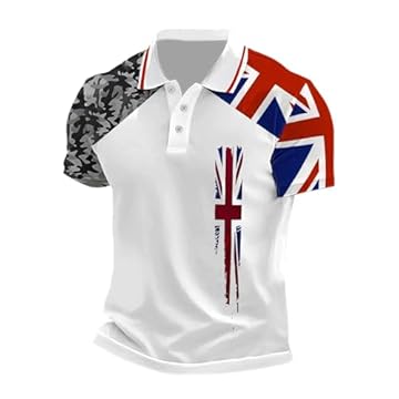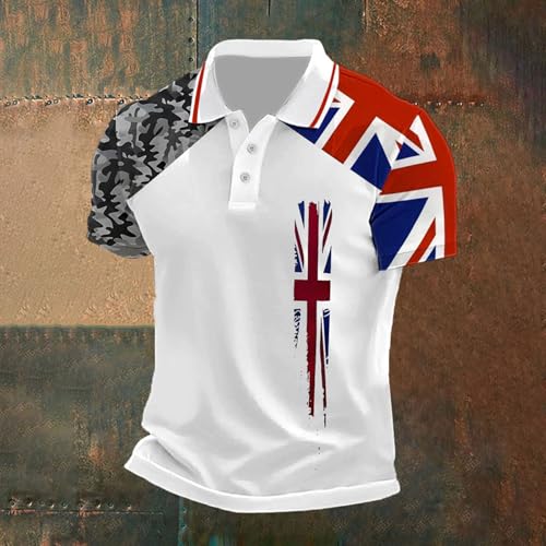 Union Jack 3/Polo Shirts for Men Adult Quick Dry Performance Golf Short Sleeve B...