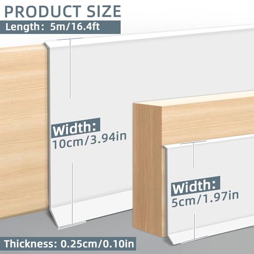 JSIWOTH 10cm x 5m Self-Adhesive Flexible Skirting Board Trim, PVC Wall Baseboard...