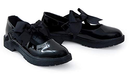 shelikes Girls Back to School Shoes Mary Jane Flat Shoes With Detachable Bow & B...