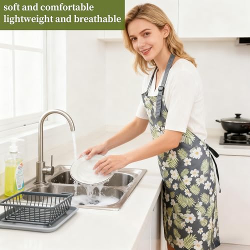 Rieoany Adjustable Flower Chef Apron with Large Capacity Pocket Reusable Waterpr...