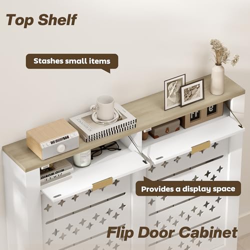 HOMCOM Radiator Cover with 2 Flip Drawers, Modern Cross Pattern MDF Cabinet Heat...