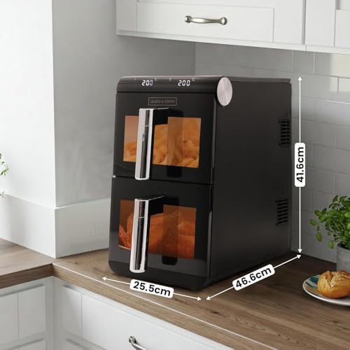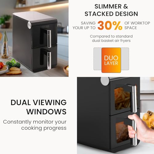 Olsen & Smith 11L Vertical Dual Stack Air Fryer with Two 5.5L Baskets, Viewing W...