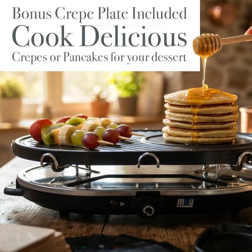M4Y Electric Raclette Luxury Stone Grill Plus Extra Non-Stick Crepe Top Attachme...
