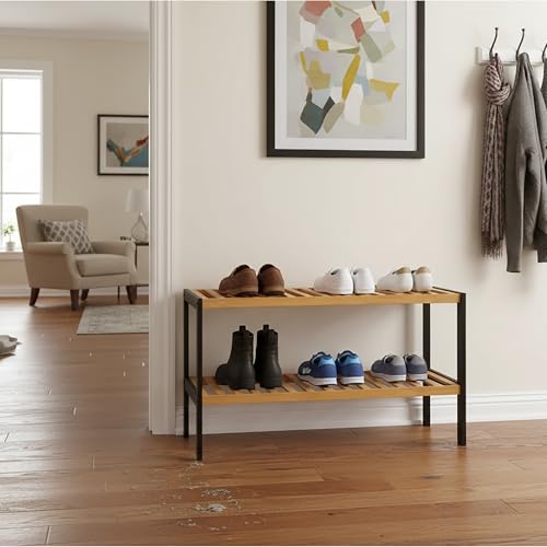 Topvaleur 2 tier bamboo Shoe rack, Shoe cabinet, shoe rack cabinet under stairs ...