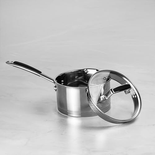 Prochef Stainless Steel Saucepan with Glass Lid, 16 cm Diameter, 9.5 cm Height, ...