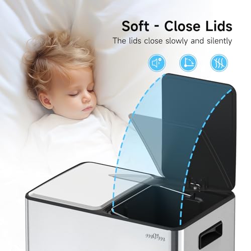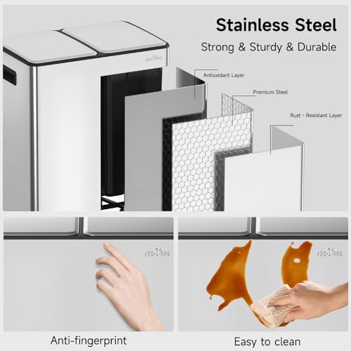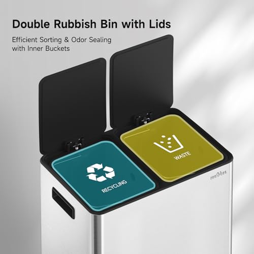 mVm Kitchen Bin,40L Dual Rubbish Bin,2 x 20L Stainless Steel Pedal Bins,Double R...