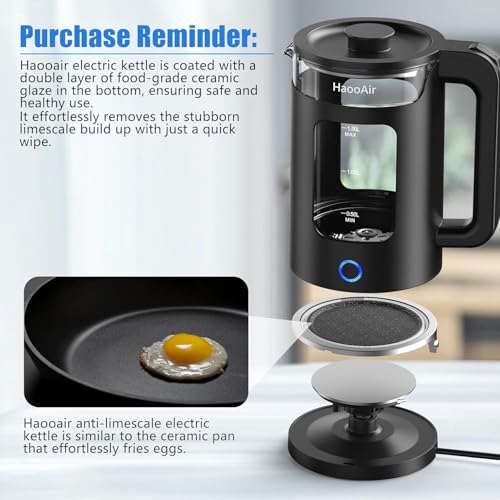 Haooair 1.5 Liter 2500W Electric Kettle with Blue LED Lights, hot water kettle m...