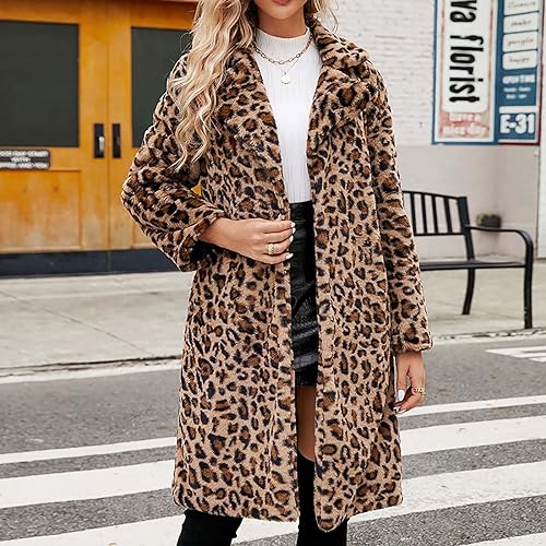 ABLYTMIAQ Faux Fur Coats for Women Uk Fashion Leopard Print Thick Fleece Winter ...