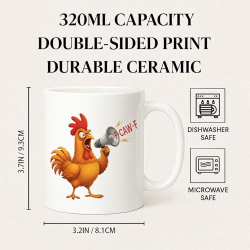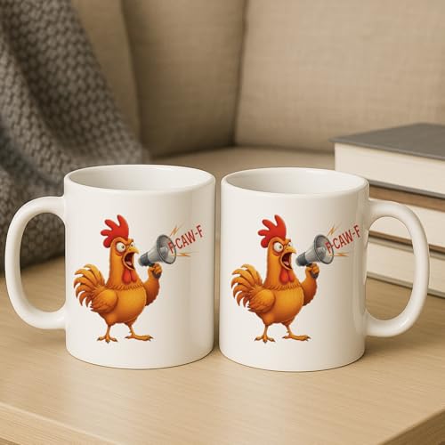 Custom Moments F-Caw-F Funny Chicken Mug 11oz – Angry Rooster Meme Cup, Crazy ...