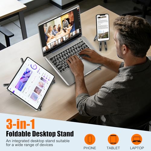 Jubor 3 in 1 Portable Laptop Stand, Aluminum Foldable Desk Tablet Stand, Adjusta...