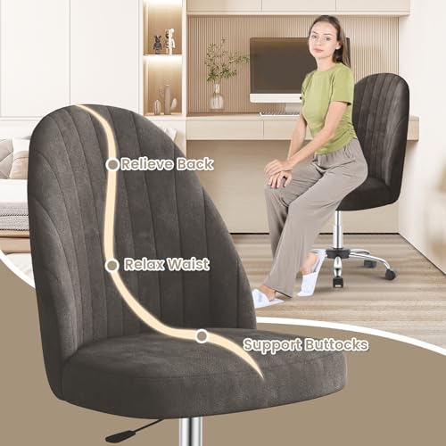 naspaluro Small Swivel Makeup Vanity Chair, Velvet Dressing Table Chairs, Dark G...