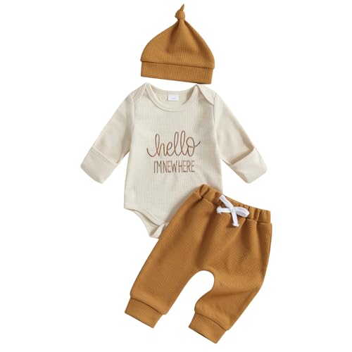 Geagodelia Hello Im New Here Letter Embroidered Newborn Baby Outfit Boys Long Sl...
