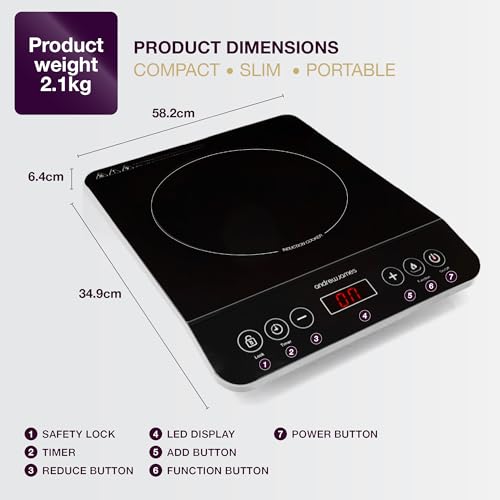 Andrew James Induction Hob Cooker 2000W, Portable Electric Hob with Hot Plate | ...