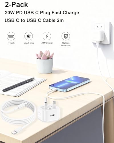 iPhone Charger Fast Charge for Apple iPhone 17 16 15, 2Pack USBC Plug 20W Type C...