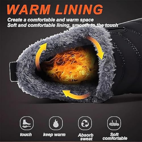 Men Women Waterproof Winter Snow Boots, Slip On Fur Lined Ankle Booties, Orthope...