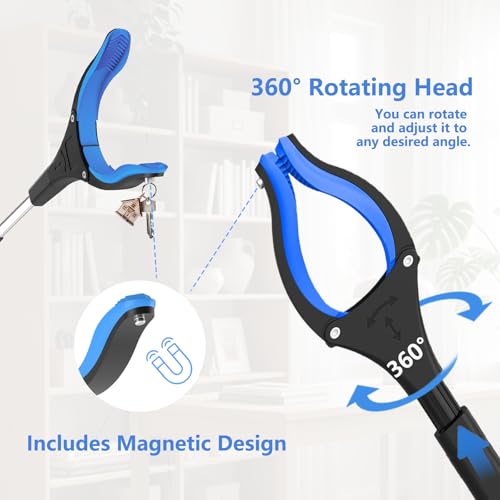 Tri-Fold Litter Picker 110cm/43", Long Reach Grabber Tool with Anti-Slip Jaw, Ma...
