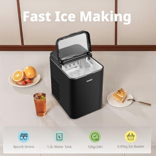 COMFEE' RCI12BL1UK(E) Countertop Ice Maker, 12kg in 24H, 8 Ice Bullets in 6-9 mi...
