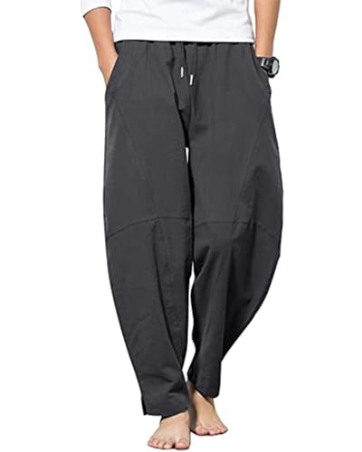 YAOBAOLE Mens Linen Trousers Summer Beach Trouser Yoga Pants with Pocket Dark Gr...
