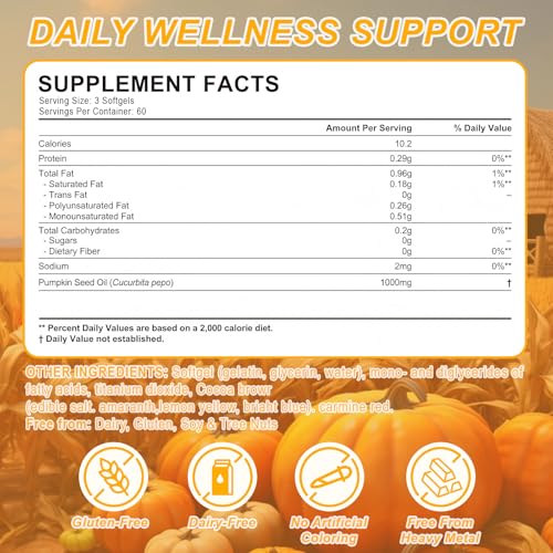 Pumpkin Seed Oil Capsules, 180 Softgels Cold Pressed Pumpkins Seed Oil for Hair ...