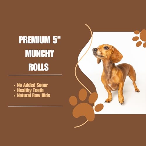 Munchy Rolls Natural 5" Dog Chews | High Protein Rawhide Treats | Dental Chews f...