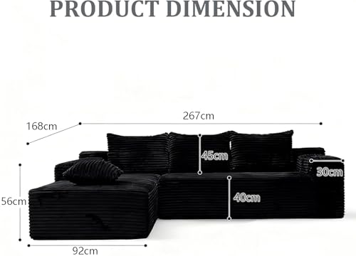 YSVDGA 267 cm Modular Sectional Sofa Boneless Couches for Living Room L-Shaped C...