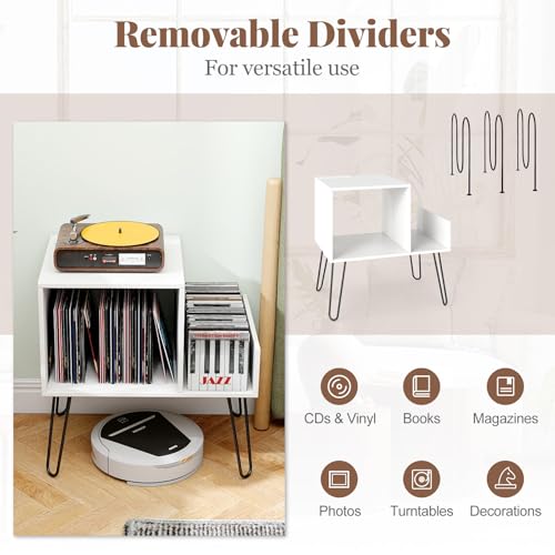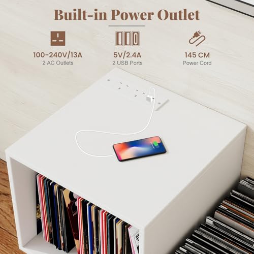 COSTWAY Record Player Stand with Charging Station, Turntable Stand End Side Tabl...
