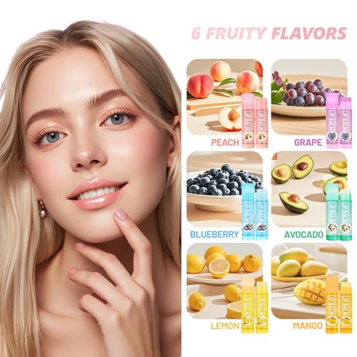 6 Pack Fruit Lip Balm Set, Organic Lip Balm Sticks, Six Assorted Flavors, Moistu...