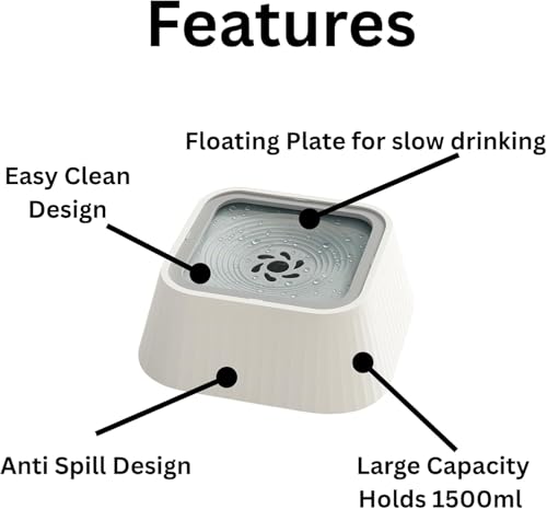 Slow Drinking Dog Water Bowl - Floating Lid To Prevent Choking and Vomiting No S...
