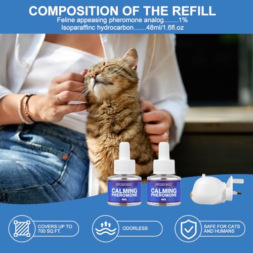 AUYAO Pheromone Diffuser for Cats Cat Calming Plug in Diffuser, Plug In Anxiety ...