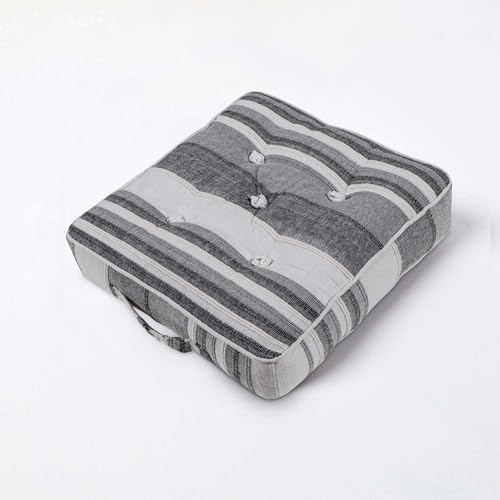 HOMESCAPES Morocco Striped 100% Cotton Floor Cushion Grey 40 x 40 x 8 cm Square ...