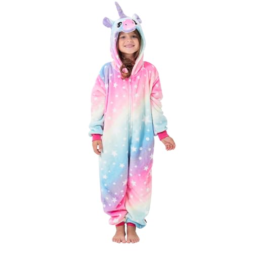 YLLSOPHAN Girls Kids Unicorn Leopard Onesie Hooded Pyjamas Animal Feature Fleece...