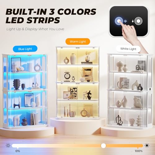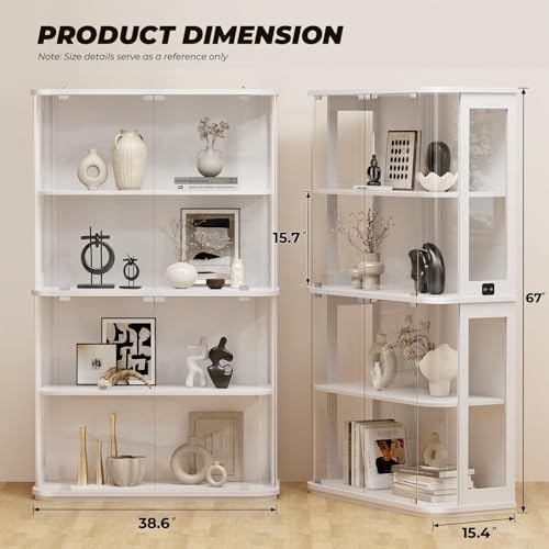 BROTTAR 67" Large Rounded Display Cabinets with Glass Door, Curio Storage Cabine...