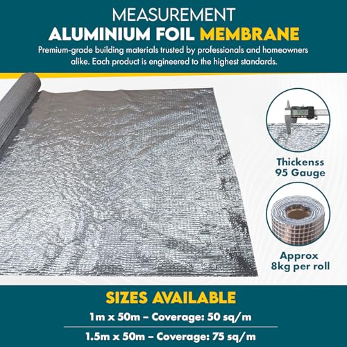 ABS PowerFoil Aluminium Foil Vapour Barrier Membrane 1m x 50m (50sqm) – Reflec...