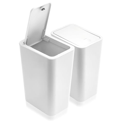2Pack Bathroom Bin with lid,Push Button Kitchen Bin,Plastic Bins for Toilet, Dog...