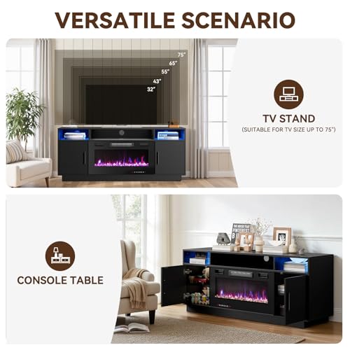 INMOZATA Electric Fireplace TV Stand, Entertainment Center Console Table for 75"...