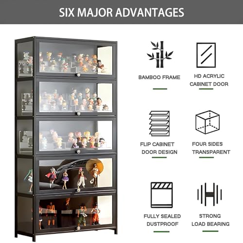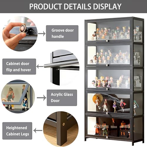 Scribora Display Cabinet with Acrylic Glass Door, 5 Tier Curio Display Case, Col...