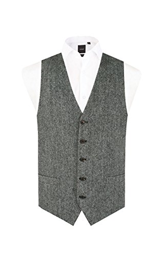 Dobell Harris Tweed Mens Grey Herringbone Waistcoat Regular Fit 100% Wool-M (38-...
