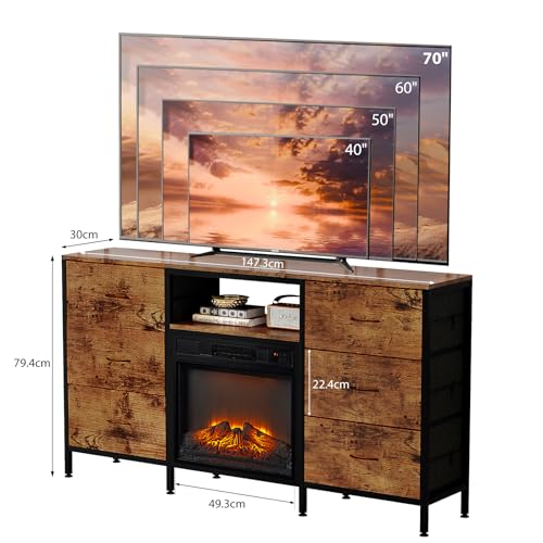 Bonnlo TV Stand with 18" Fireplace, Rustic TV Unit for Living Room, Under TV Cab...