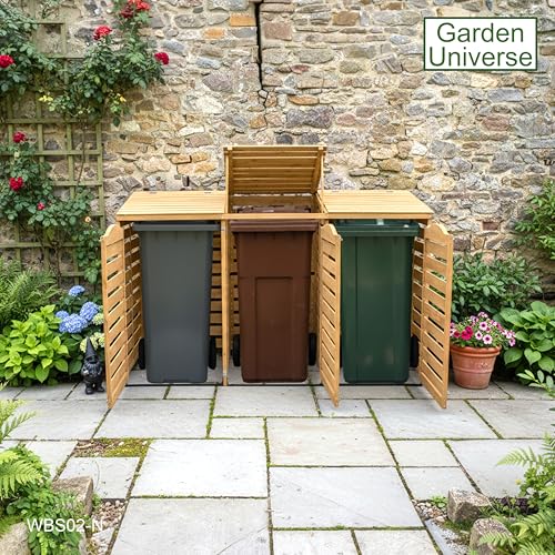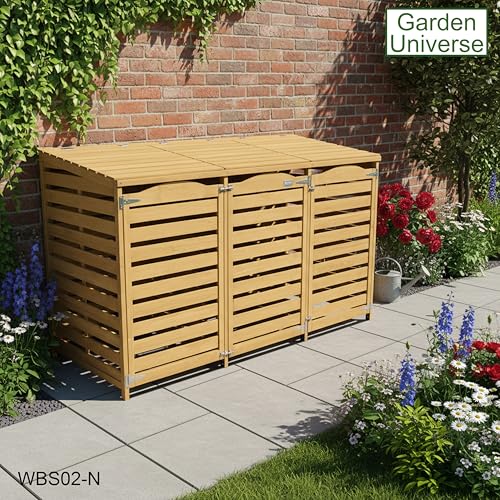 Wheelie Bin Storage Unit Triple Three Bins Garden Universe Outdoor 3 Wheelie Bin...