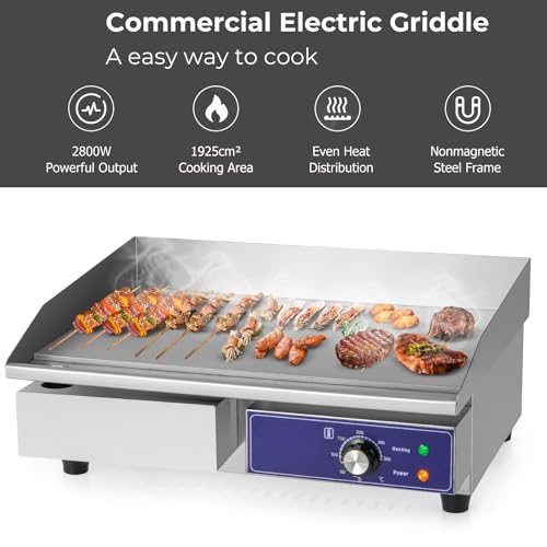 TANGZON Commercial Electric Griddle, 2800W Countertop Flat Top Griddle with 55 x...