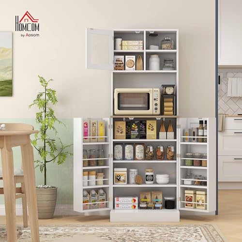 HOMCOM 169cm Kitchen Cupboard, Freestanding Storage Cabinet with Microwave Shelf...