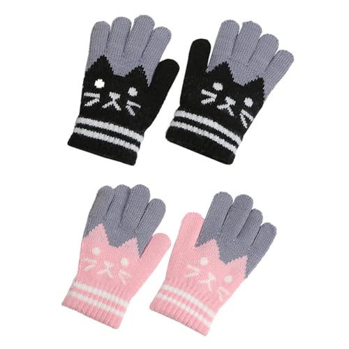 Luckious Kids Black and Pink Winter Cat Gloves, Soft Gloves Outdoor School Warm ...