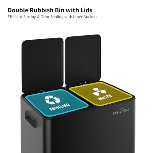 mVm Kitchen Bin,60L Dual Rubbish Bin,2 x 30L Stainless Steel Pedal Bin,Double Re...