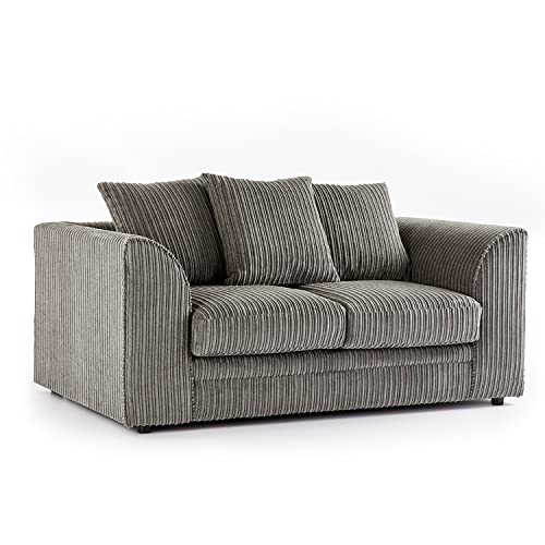 New Luxor Grey 2 Seater Soft Jumbo Cord Sofa | Soft 2 Seater Luxury Jumbo Cord S...