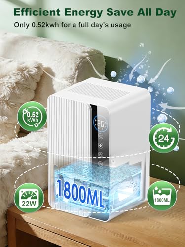 Dehumidifiers for Home, 1.8L Dehumidifier for Bedroom, Quiet Portable Dehumidifi...